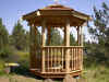 The 8' Traditional style gazebo is the most simple model we offer, enabling us to hold elegant lines and yet we lose nothing in structural strength. For an enlarged view click on thumbnail then return with browsers back button Country border Baluster border Lattice border Our Traditional style Gazebo is constructed using select tight knot western red cedar. We manufacture this product into fully assembled panels and components, using 3" yellow zinc screws. The floor comes in 4 quarter panels , the sides are fully constructed, stand them up and fasten together. The roof has 4 pie shaped components with 4 ( assembled on site) inside components to make up the roof framework and 8- fully assembled cedar shingle roof panels that drop into place.